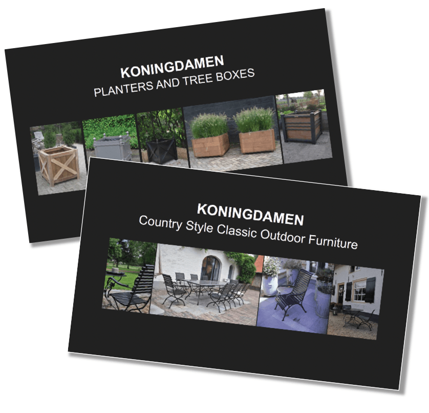 Koningdamen heeft zich toegelegd op ontwikkeling en productie in eigen beheer van exclusief tuin-, park- en straatmeubilair.