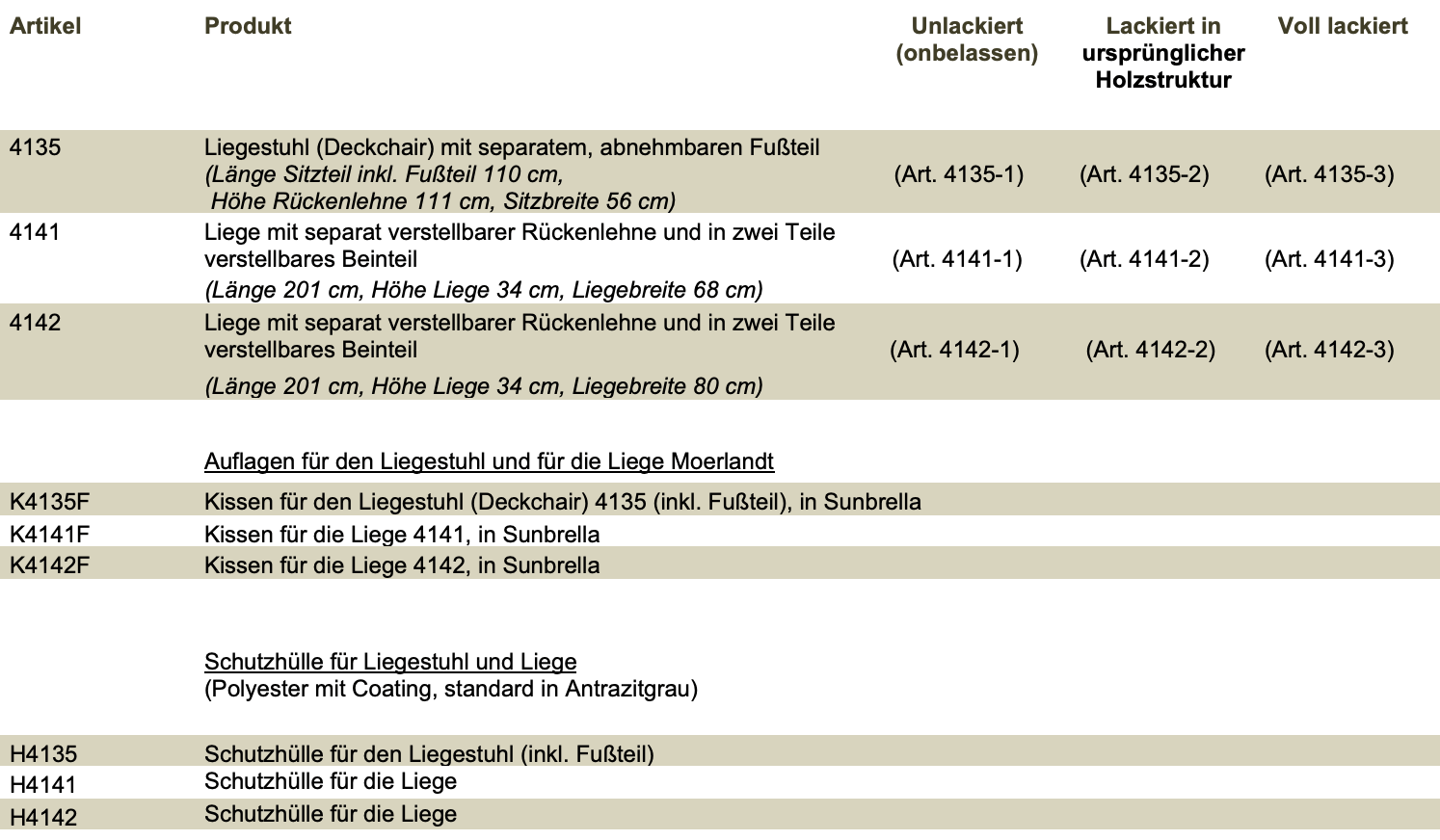 SERIE MOERLANDT - LIEGESTÜHLE (DECKCHAIRS) UND LIEGEN