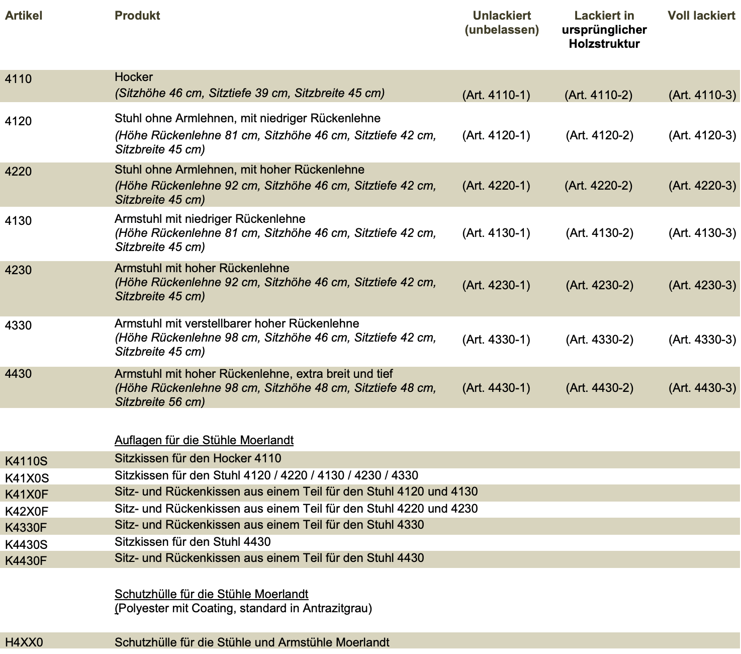 Die wirklich klassischen Sitze (und auch Liegen und Sonnenliegen) für draußen. Zeitloses Design, solide Qualität und perfektes Finish. Erhältlich mit niedriger und hoher Rückenlehne, mit und ohne Armlehnen und mit verstellbarer Rückenlehne. Und ein Stuhl mit zusätzlicher Sitzbreite und Sitztiefe für Personen mit einer größeren Körpergröße. Dazu ein Tabouret, ideal als separater Stuhl oder eventuell als Beistelltisch. Die Moerlandt-Serie zeichnet sich durch geschwungene Armlehnen (Sessel) und schmale (3 cm) Sitz- und Rückenleisten aus. Die Hartholzlatten können unlackiert (unbehandelt) oder lackiert bleiben. Die Lackierung kann so erfolgen, dass die Maserung des Hartholzes sichtbar bleibt oder vollständig lackiert wird, wobei die Maserung des Hartholzes im Sitz- / Rückenbereich nicht mehr sichtbar ist. Die Standardfarbe sowohl für den Stahlrahmen als auch für die Hartholzlatten ist schwarz-grün. Wir lackieren jedoch in jeder gewünschten RAL-Farbe. Wird nur der Stahlrahmen in einer anderen als der Standardfarbe lackiert, wird ein Zuschlag von 5% erhoben. Wenn sowohl der Stahlrahmen als auch die Hartholzlatten in einer anderen Farbe lackiert sind, wird ein Zuschlag von 10% erhoben.