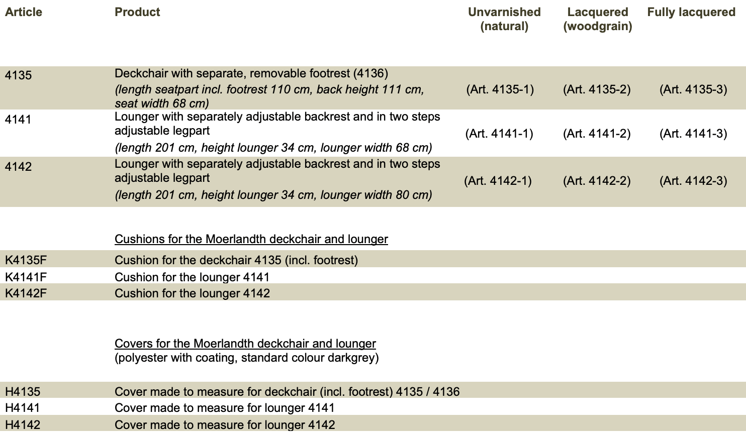 SERIES MOERLANDT - SEATING CHAIRS (DECKCHAIRS) AND SLEEPING BEDS