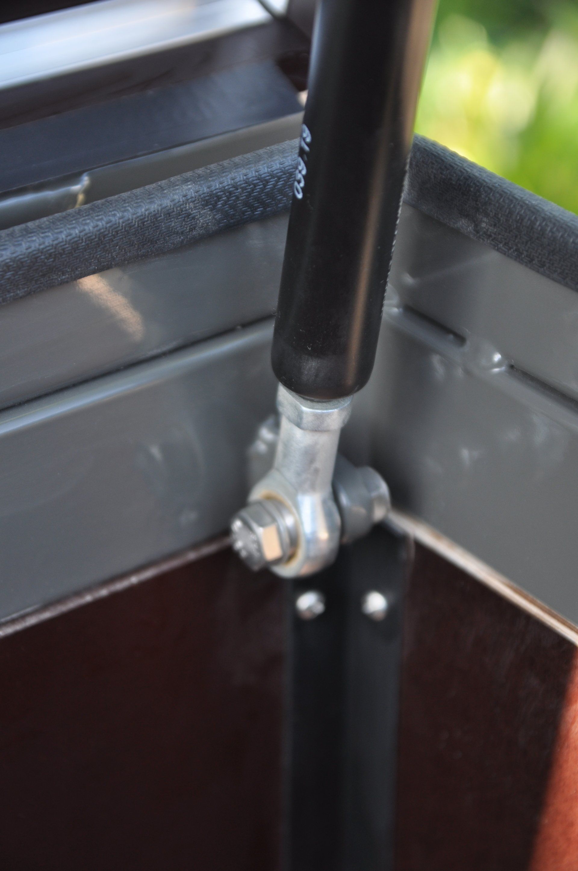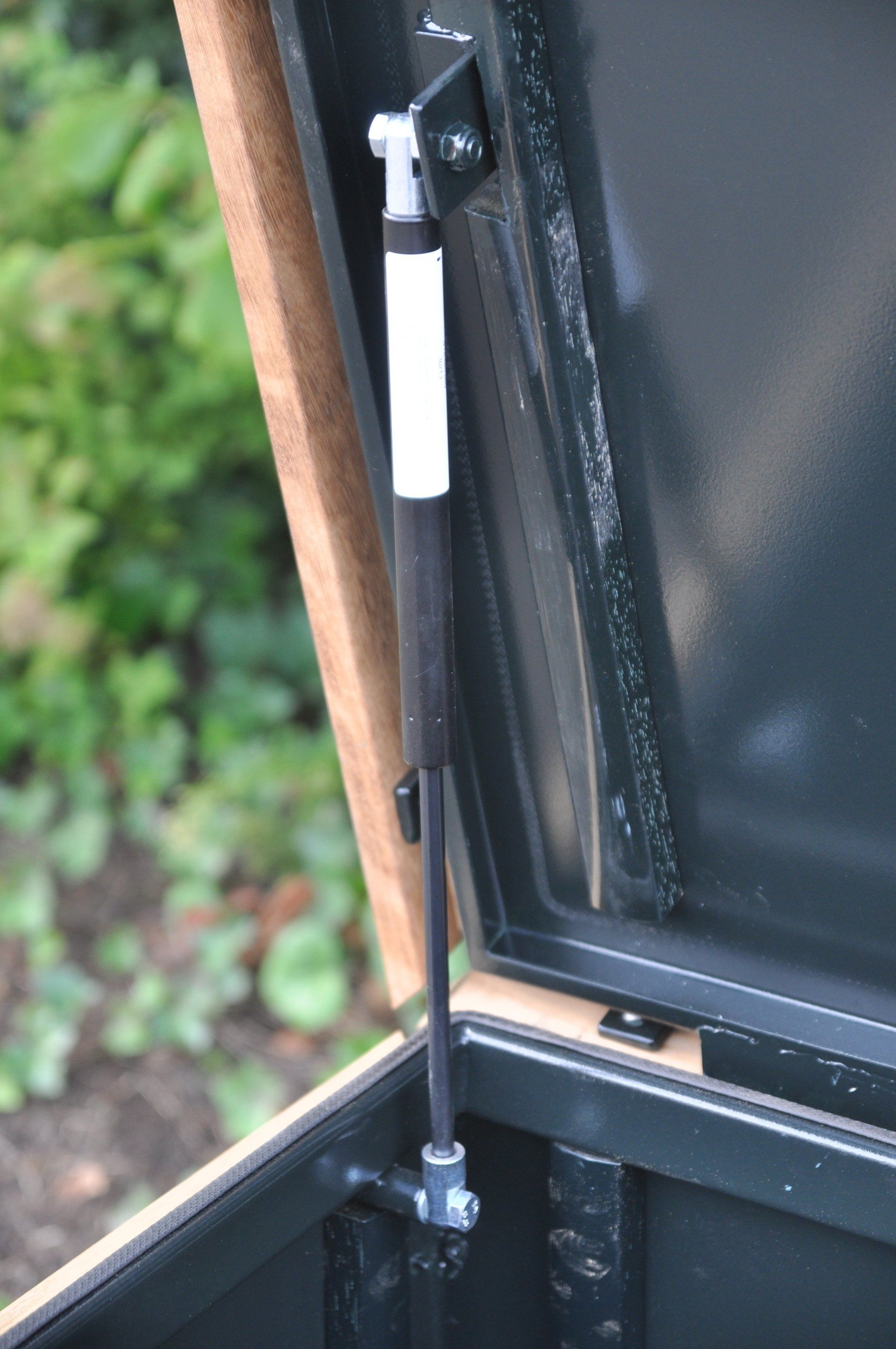 Completely waterproof, with ventilation for some air flow. Equipped with gas springs and with safety chains. Inside nicely finished with sheet material (wood).