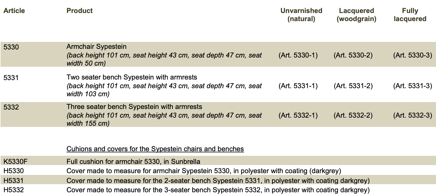 All furniture is made from natural materials (steel and hardwood). The steel furniture is galvanized to protect against rust and then coated in color. The furniture is then assembled with the hardwood seat and back slats and armrests, completely varnished in color. The hardwood slats can remain unvarnished (untreated) or lacquered. Lacquering can be done in such a way that the grain structure of the hardwood remains visible or completely lacquered, whereby you no longer see the grain structure of the hardwood on the seat / back section. The standard color for both the steel frame and the hardwood slats is black-green. But we coat in any desired RAL color. If only the steel frame is coated in a color other than standard, then a surcharge of 5% applies. If both the steel frame and the hardwood slats are coated in a different color, a surcharge of 10% applies. Various options for a low, tailor-made table with a natural stone top, a lacquered steel top, a top made of glass.