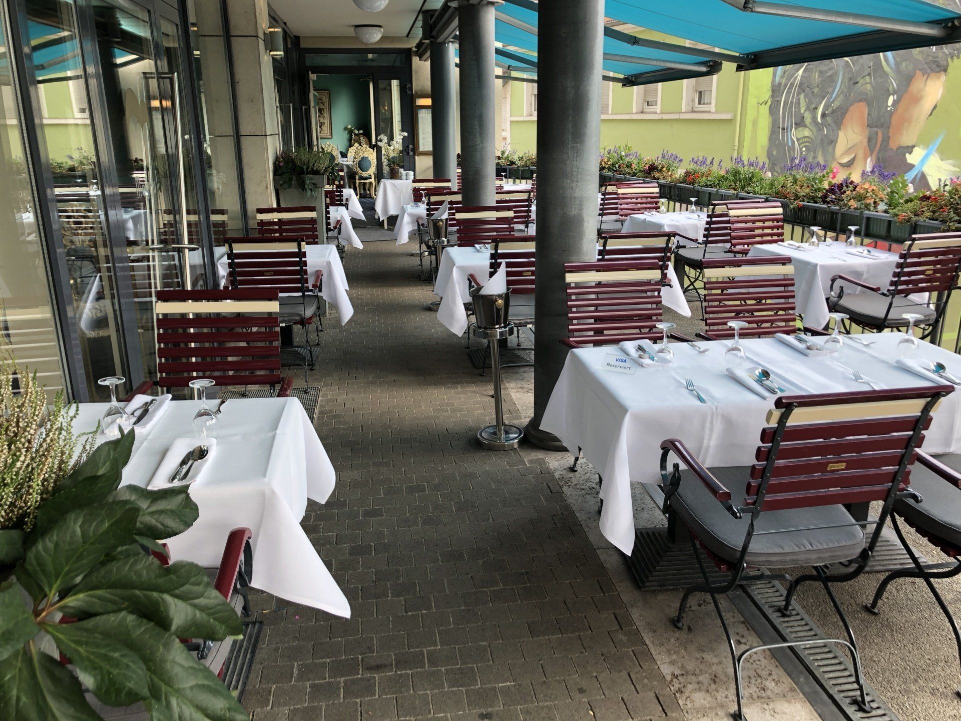 Restaurant van Cornelia Poletto, gelegen dicht het centrum van Hamburg. Op de hoek van een drukke straat, met beperkte terrasruimte.