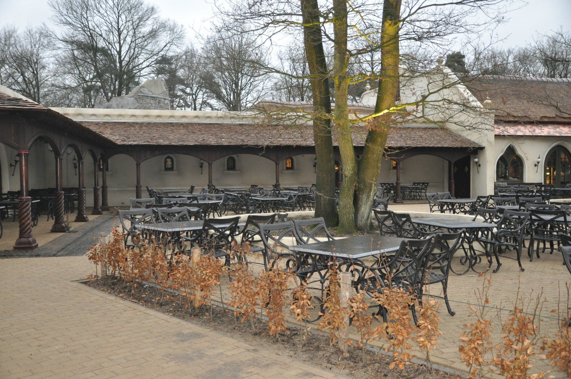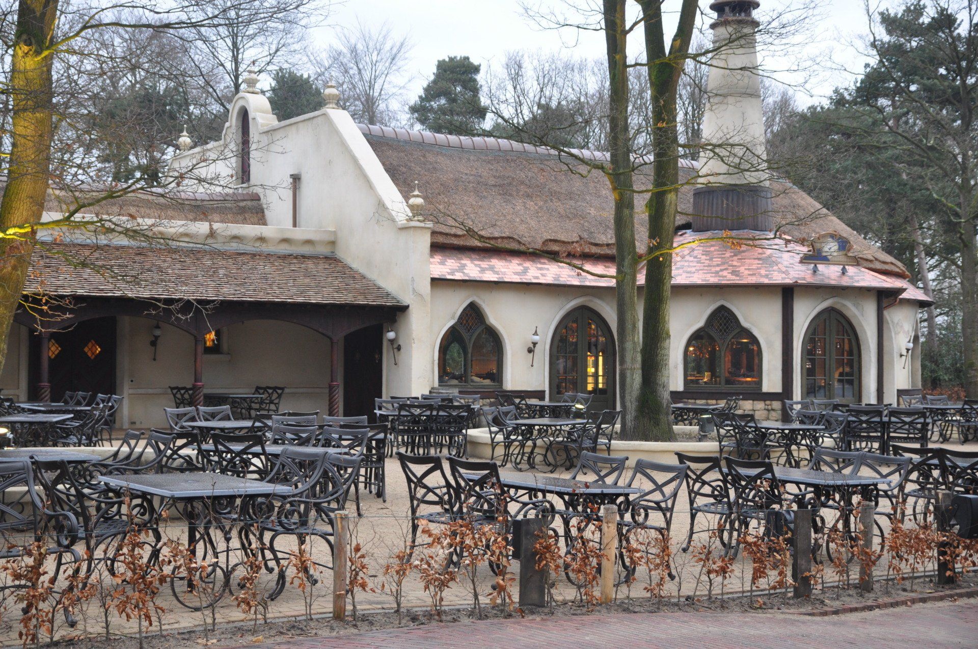Bij een nieuw restaurant in het park is het buitenterras ingericht met nieuw buitenmeubilair. Tafels op maat van  Koningdamen. Een tafel naar initieel eigen ontwerp van dit attractiepark. Het tafelonderstel is gemaakt van staal, met veel buigwerk en solide gelaste staalconstructie. Volledig maatwerk, op specificatie van het park. Met een  prachtig blad in natuursteen (Belgisch hardsteen). Een onverslijtbare, solide combinatie. Bijpassend de stoelen die gemaakt zijn uit gietaluminium. Het geheel past perfect in de sfeer en uitstraling van het totale attractiepark. Als bezoeker kun je er niet omheen en word je als het ware meegenomen in de sprookjesachtige sfeer van het totale park.